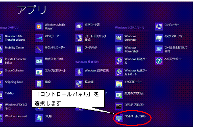 2.アプリにある「コントロールパネル」を選びます。