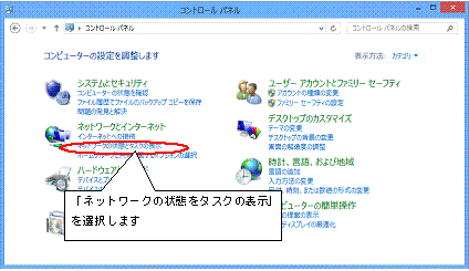 3.コントロールパネルにある「ネットワークの状態とタスクの表示」を選択します。