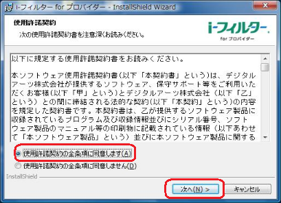 ※使用許諾契約に同意いただけませんと「i−フィルター for プロバイダー(Windows版)」はご利用できません。