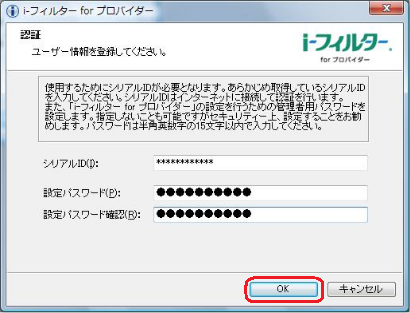 シリアルID・パスワードの入力が完了しましたら、「OK」ボタンをクリックしてください。