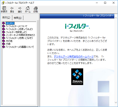 i−フィルター for プロバイダー(Windows版)ヘルプ表示方法