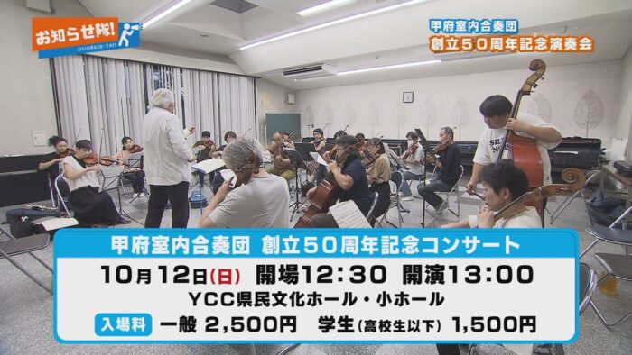 甲府室内合奏団創立50周年記念コンサートのお知らせです。50周年を記念したメモリアルなコンサートです。