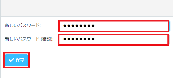 「新しいパスワード」及び「新しいパスワード(確認)」へ、新しいパスワードを入力し「保存」を選択します。