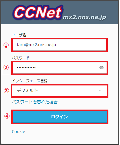 ①ユーザ名には、お客様登録通知書記載のメールアドレスを入力してください。※1