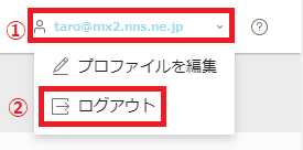 ①画面右上に表示されているメールアドレスをクリックします。