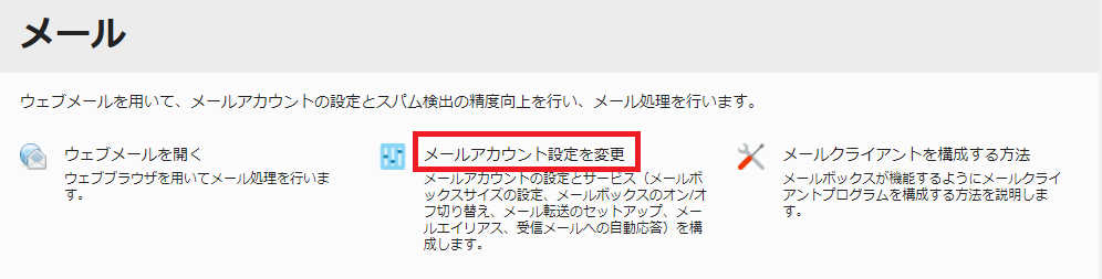 表示された画面の「メールアカウント設定を変更」を選びます。