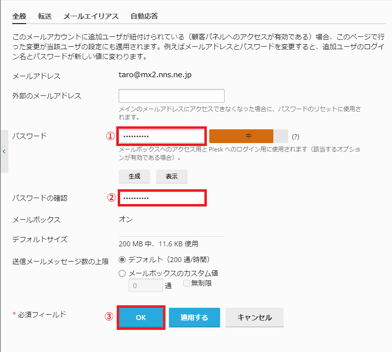 ①「パスワード」に変更したいパスワードを入力します。