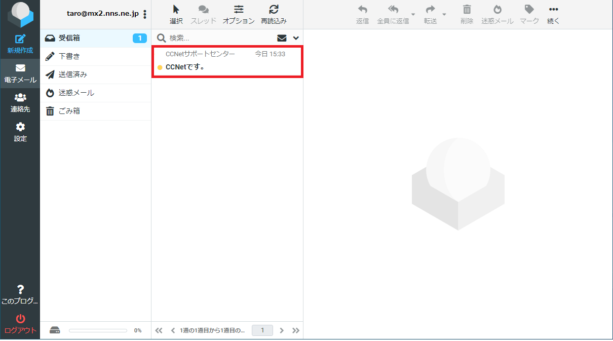 ※ ウェブメールからメールを削除するとCCNetのメールサーバからも削除されてしまうので注意して下さい。