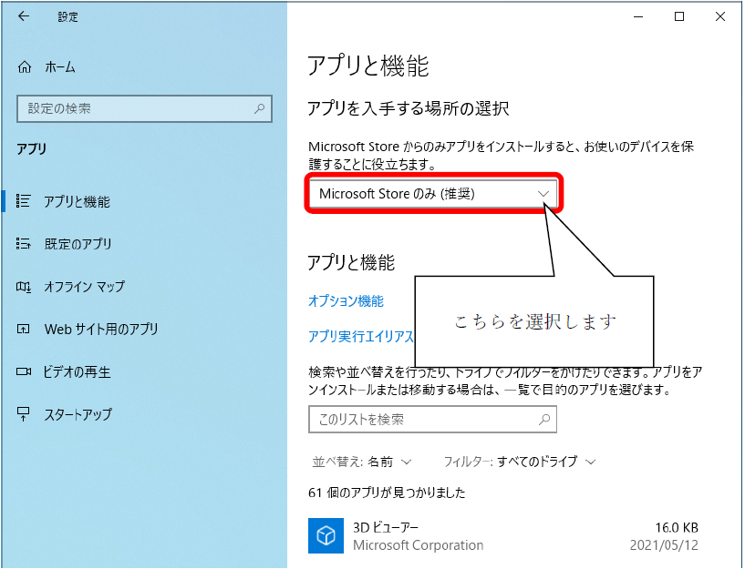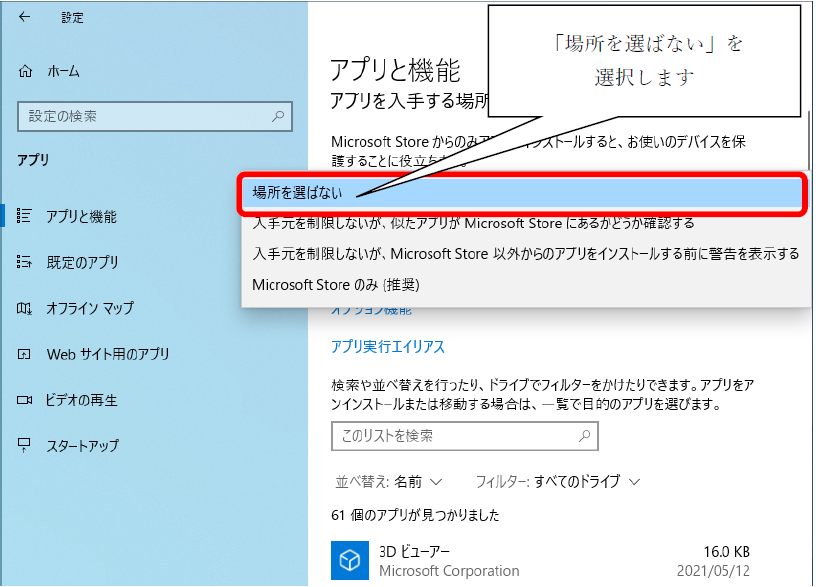 アプリを入手する場所の設定を変更してください