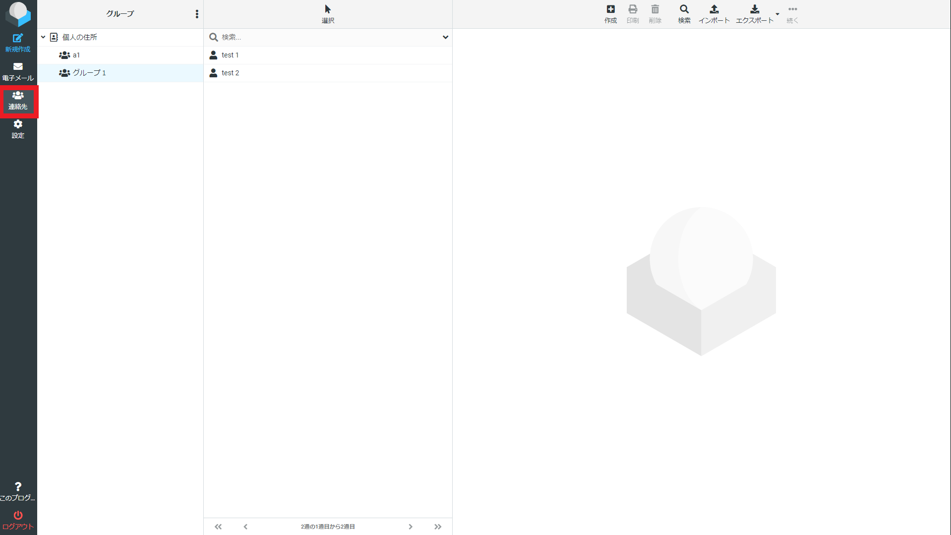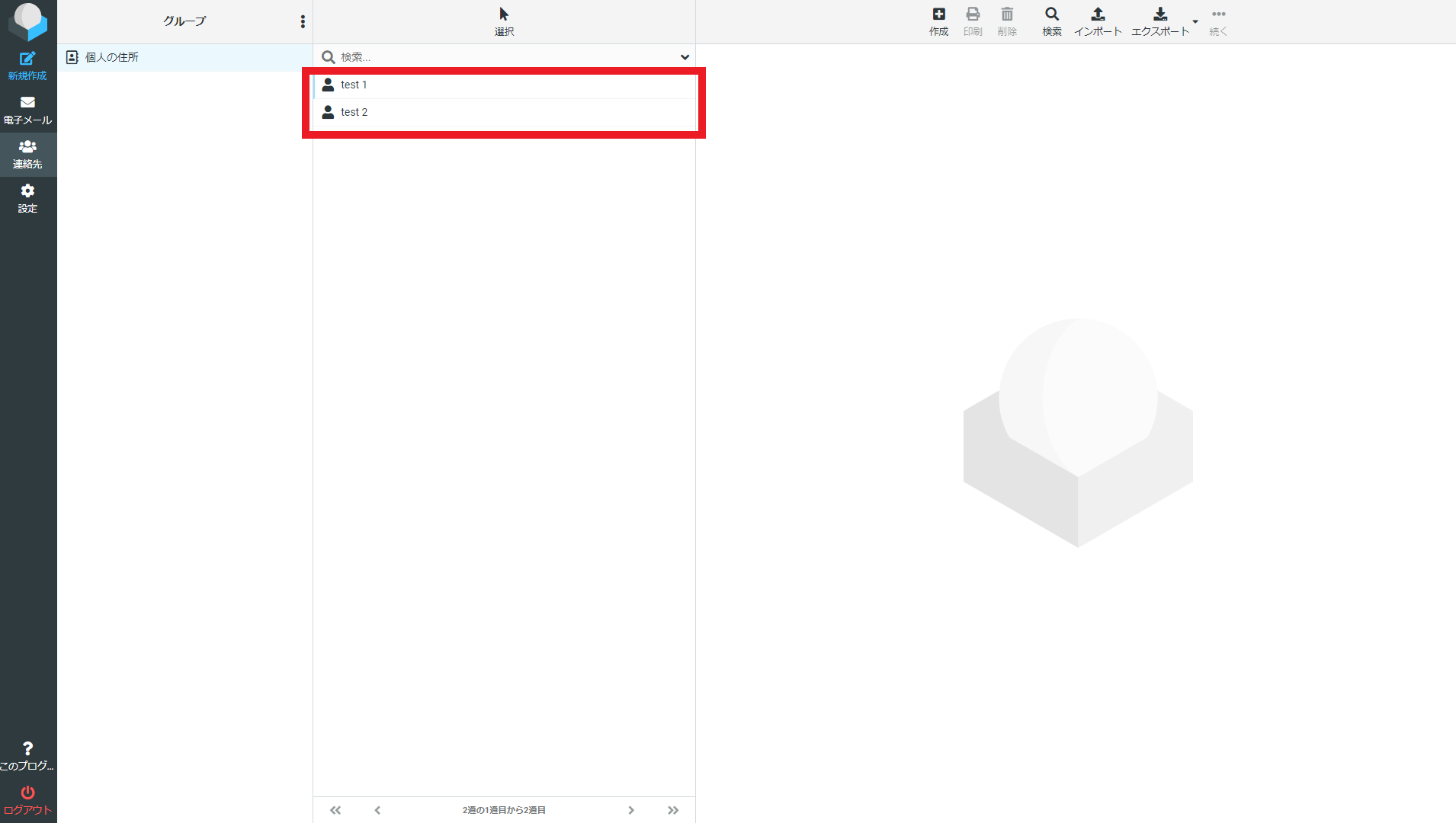 ログイン後、左側メニューの連絡先を選択すると登録されている連絡先が表示されます。